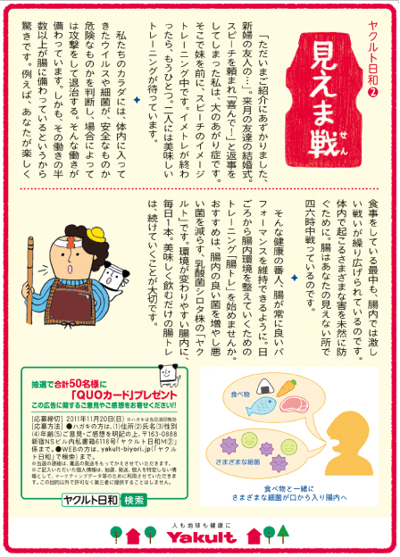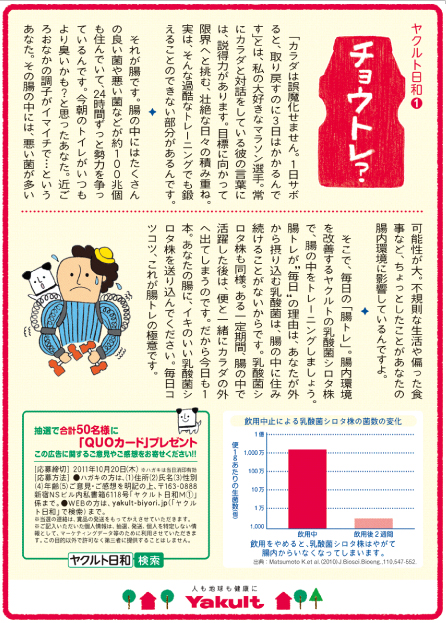 ――その「ヤクルト日和」が、朝日新聞の広告特集「ボンマルシェ」にも引き続き掲載されています。ねらい、反響を聞かせてください。