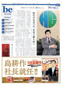 そして新連載開始当日、朝日新聞紙上で全15段の広告特集を展開。土曜beの「フロントランナー」の体裁そのままに、“初芝五洋ホールディングス社長 島耕作”が企業の未来を語った。