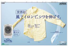 この冷蔵庫広告の成功を受け、昨秋発売のもうひとつの目玉商品であるドラム式洗濯乾燥機も60段のトリプルワイドで展開した。「実は冷蔵庫の広告を作る際、冷蔵庫の写真を原寸大で掲載したかった」と庄司氏。だが、写真が大きすぎて何の広告かわからないのでは、という心配の声が出たこともあって断念していた。「洗濯機では思い切って大きな写真に挑戦してみることにしました」