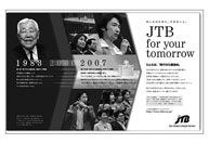 コミュニケーションツールの中心は新聞広告だ。分社化した2006年は、一般紙を利用しBtoB広告を展開、グループの中でも専門性の高い事業を紹介。2007年にはBtoC広告を開始。第一弾として、7月から10月にかけ、月1回のペースで「あしたのために、できることJTB for your tomorrow」シリーズを展開した。