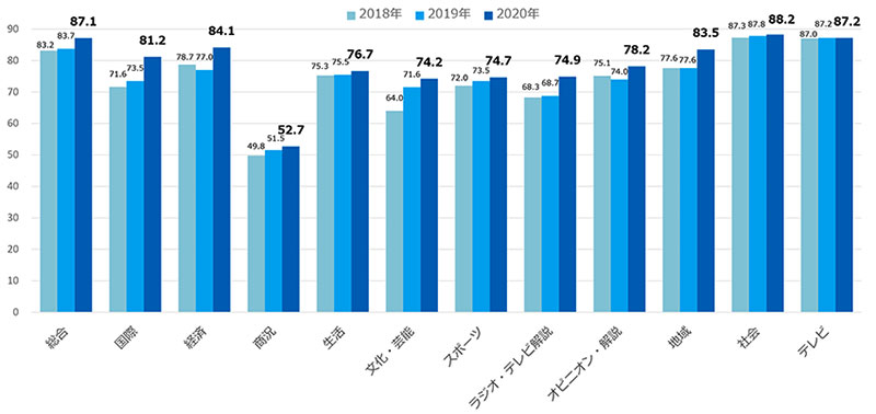 新聞各面の接触率平均値は過去3年で最も高いスコアに。29歳以下でも伸長。