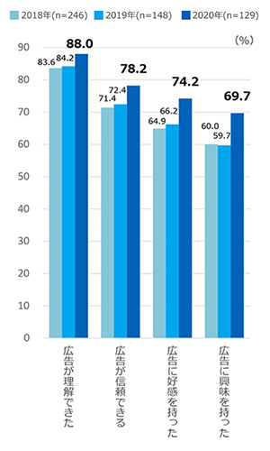新聞広告の接触率、広告評価、印象も2020年が最も高い