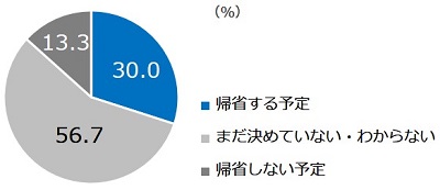 例年、年末年始に帰省していると答えた方に今年の予定を聞いた。3割が帰省予定、約6割が未定と返答。