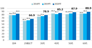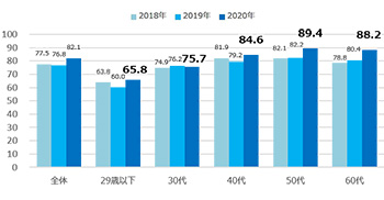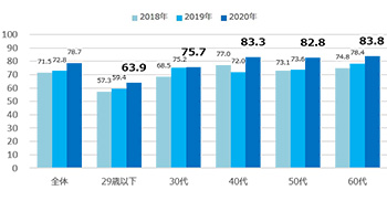 29歳以下の若い世代でも2020年の接触率は伸長