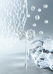 私が作品を作る際に使うガラスは常に透明で色はつけていません。なぜなら、生命には色がないように感じるからです。その点については、子ども時代を北海道で過ごしたことが影響している部分もあるような気がしています。私が住んでいたのは札幌市の中でもすぐ近くには山があるような場所でした。学校から一人で帰る途中、薄墨色の空から突然白いものがふわふわと舞い落ちてきたり、暗闇の中で街灯に照らされ美しく浮かび上がる雪景色を目にしたり。雪や氷を日常的に目にしながら育った影響は、私の作品の中にも強く反映されていると思います。